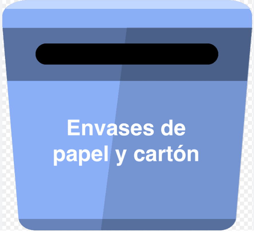 El contenedor azul es para el papel y el cartón, como cajas o cuadernos.