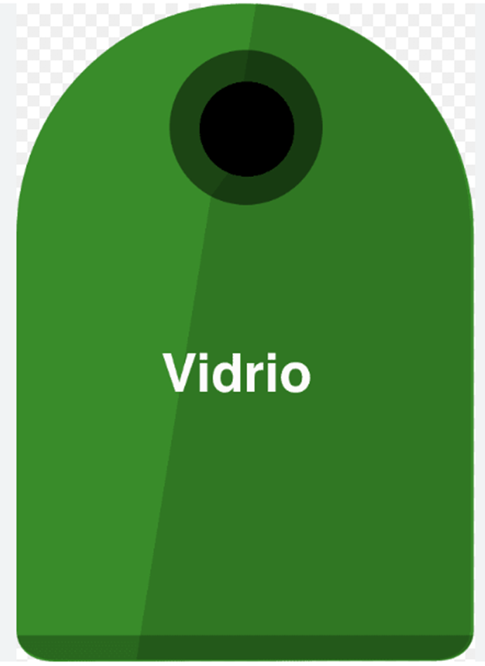 El contenedor verde es para el vidrio, como botellas y tarros.