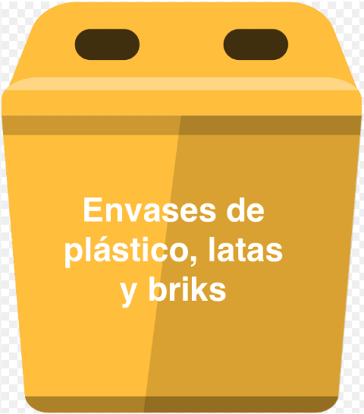 El contenedor amarillo es para los envases de plástico, latas y bricks.